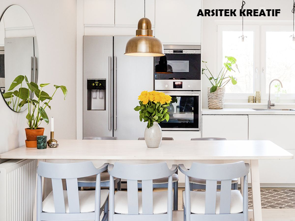 Dekorasi dalam dapur Skandinavia tidak berlebihan, tetapi cukup untuk menambah kepribadian pada ruang. Arsitek kreatif sering menambahkan tanaman hijau kecil untuk memberi sentuhan alami. Transisi lembut antara warna dinding dan hiasan menciptakan suasana seimbang. Vas bunga sederhana, lukisan minimalis, atau lampu gantung kayu menjadi elemen dekoratif yang memperindah ruangan. Selain itu, penggunaan kain linen atau katun alami pada tirai dan taplak meja memperkuat kesan hangat. Dekorasi kecil ini mempercantik dapur tanpa membuatnya terasa ramai. Dengan dekorasi yang proporsional, dapur tampak segar, alami, dan inspiratif.
